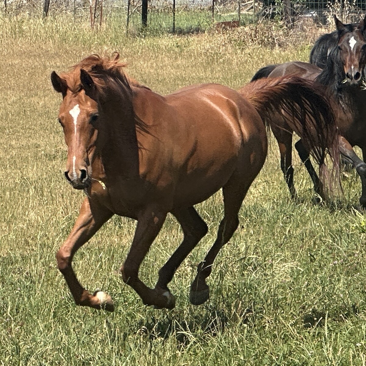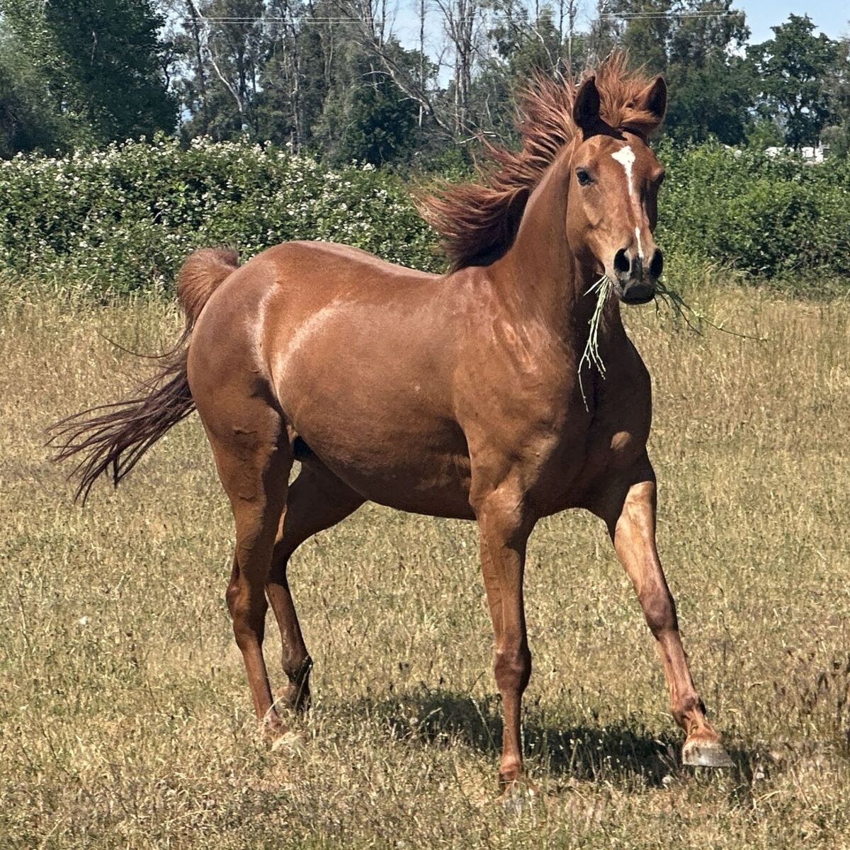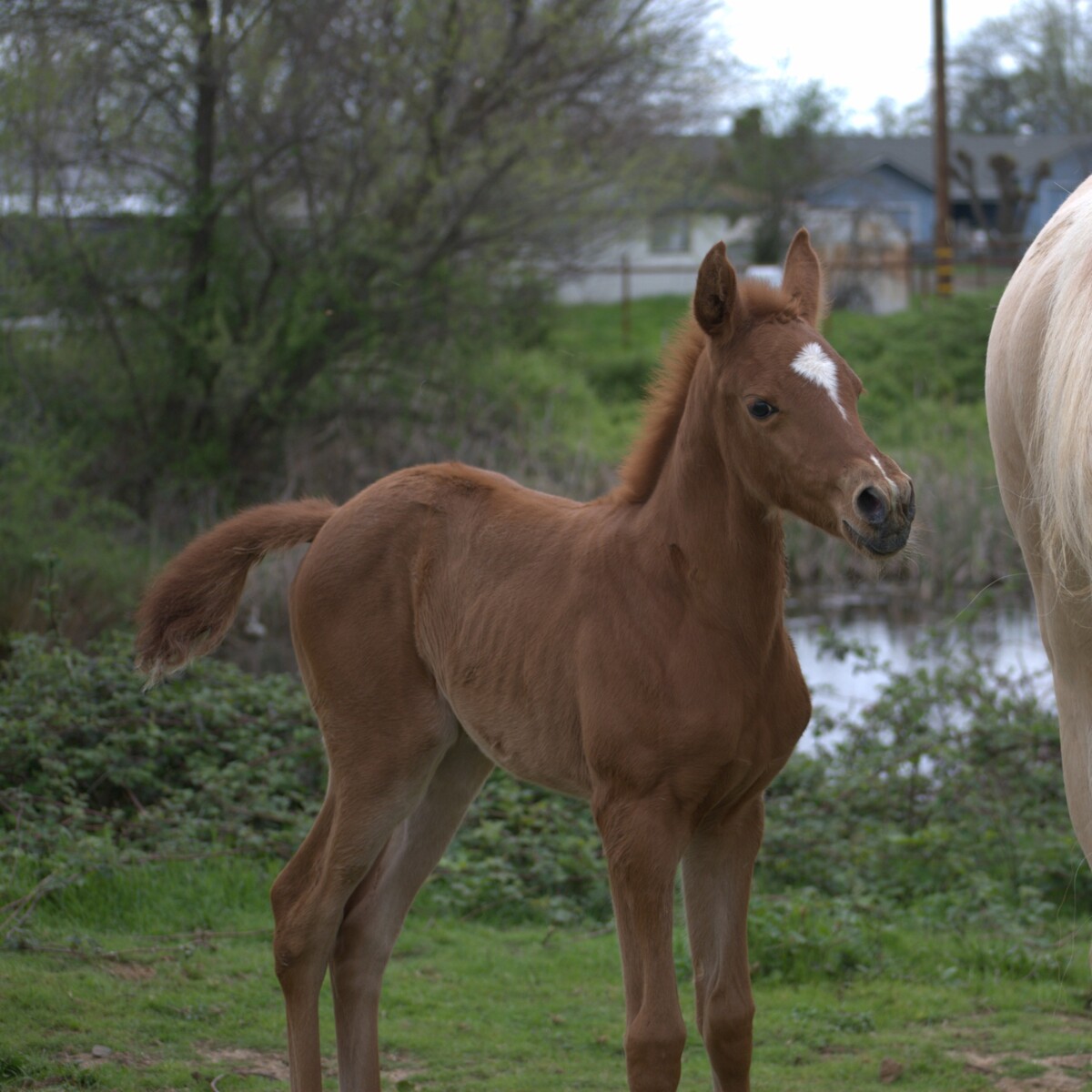 2014 Chestnut and white pinto Saddlebred Arabian cross (half-sister to Riyah)