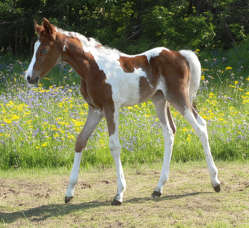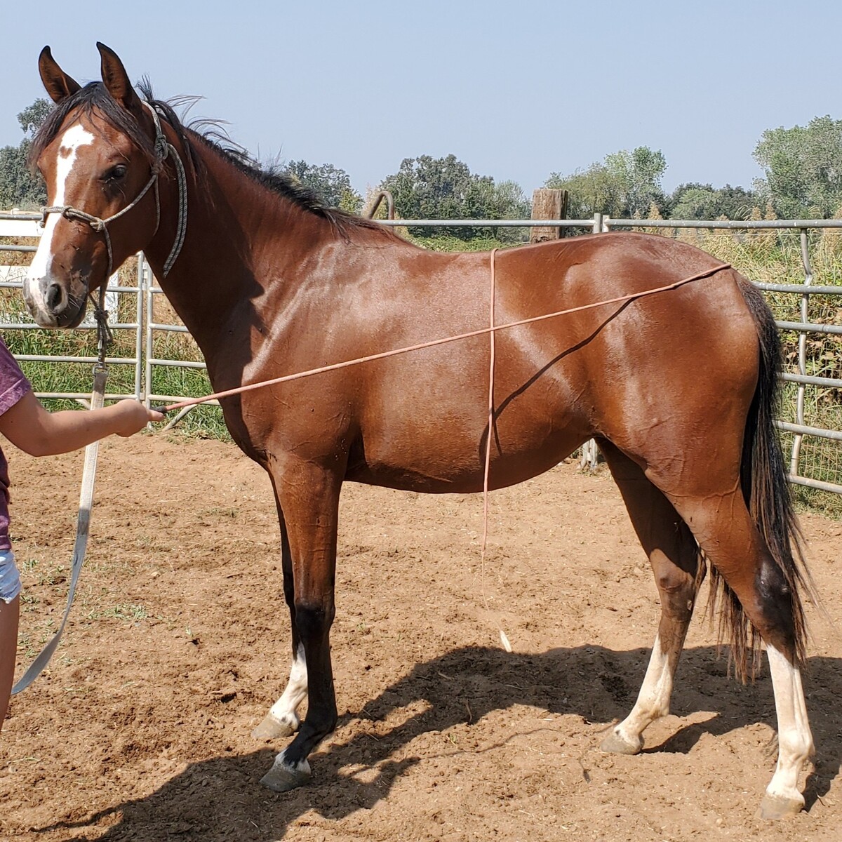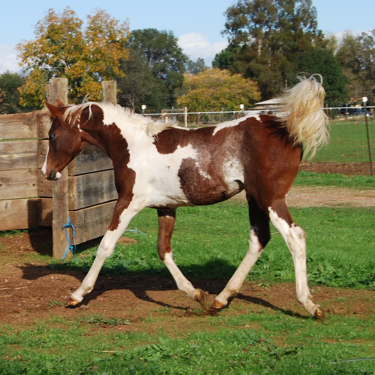 2014 Chestnut and white pinto Saddlebred Arabian cross (half-sister to Riyah)