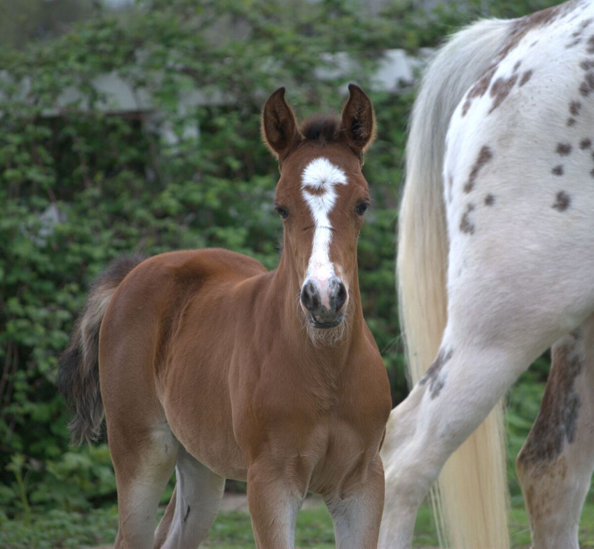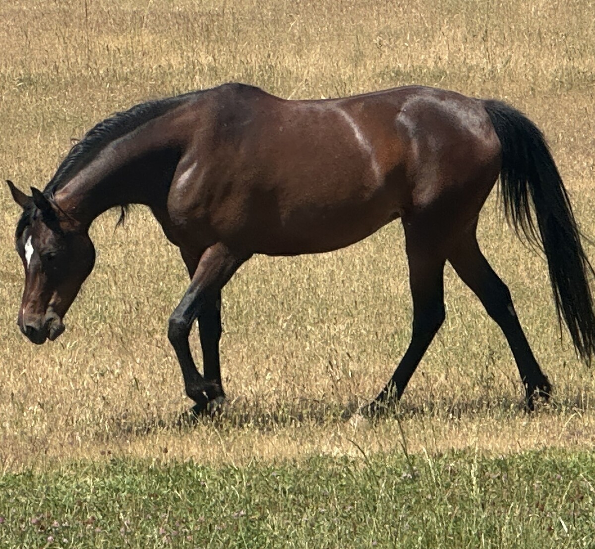 Cady, as I call her, is exactly what I hoped for from this cross—except perhaps her chestnut color. She is big-bodied, balanced, graceful, and powerful. As a foal, she injured her eye and nearly lost it, an experience that only deepened my bond with her.